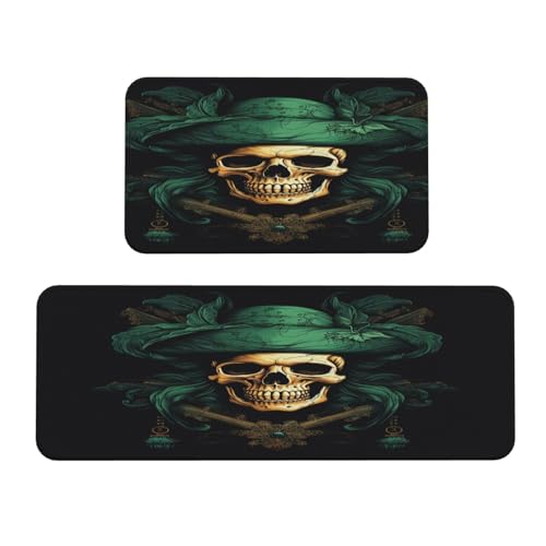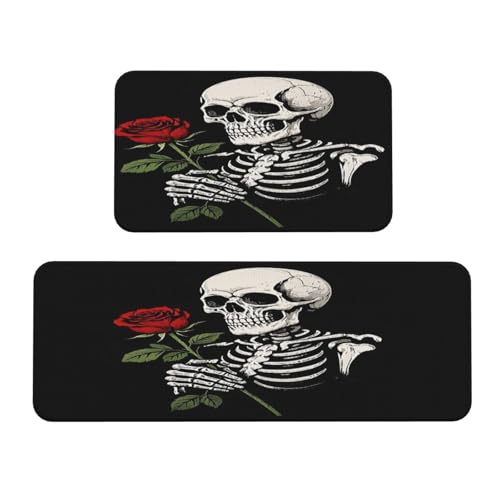 Vintage Skull Rosary Kitchen Rugs Set of 2, Cushioned Anti-Fatigue Kitchen Mats for Floor, Waterproof Comfort Standing Mat Absorbent Velvet Kitchen Runner Rugs 17"x30"+17"x47"