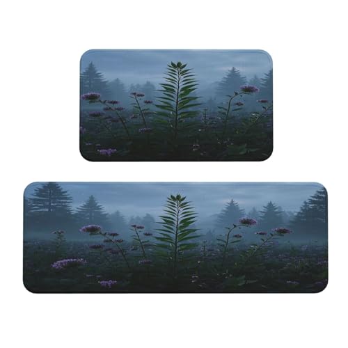 Wild Flower Bed Kitchen Rugs Set of 2, Cushioned Anti-Fatigue Kitchen Mats for Floor, Waterproof Comfort Standing Mat Absorbent Velvet Kitchen Runner Rugs 17"x30"+17"x47"
