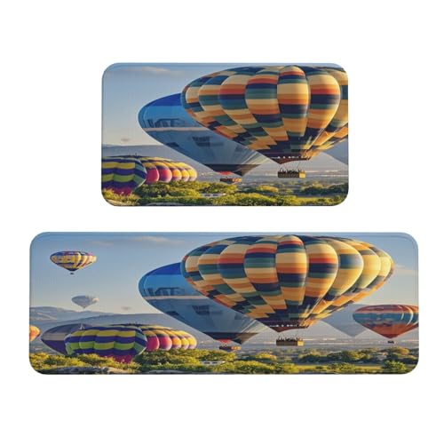 Hot Air Balloons (2) Kitchen Rugs Set of 2, Cushioned Anti-Fatigue Kitchen Mats for Floor, Waterproof Comfort Standing Mat Absorbent Velvet Kitchen Runner Rugs 17"x30"+17"x47"