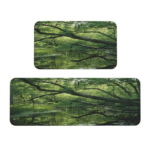 an Ancient Swamp Kitchen Rugs Set of 2, Cushioned Anti-Fatigue Kitchen Mats for Floor, Waterproof Comfort Standing Mat Absorbent Velvet Kitchen Runner Rugs 17"x30"+17"x47"