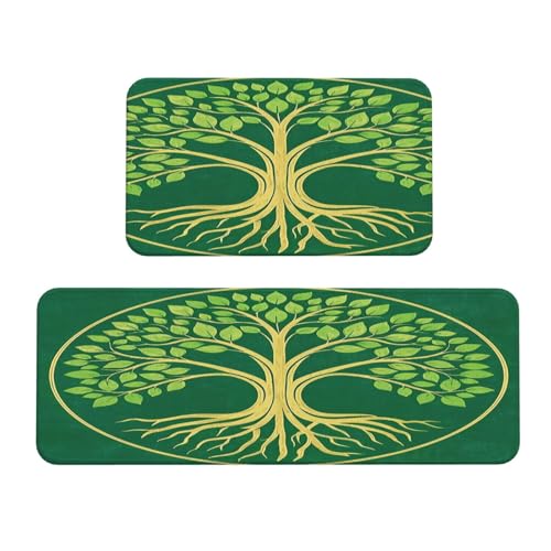 Vintage Tree of Life Abstract Pattern Kitchen Rugs Set of 2, Cushioned Anti-Fatigue Kitchen Mats for Floor, Waterproof Comfort Standing Mat Absorbent Velvet Kitchen Runner Rugs 17"x30"+17"x47"