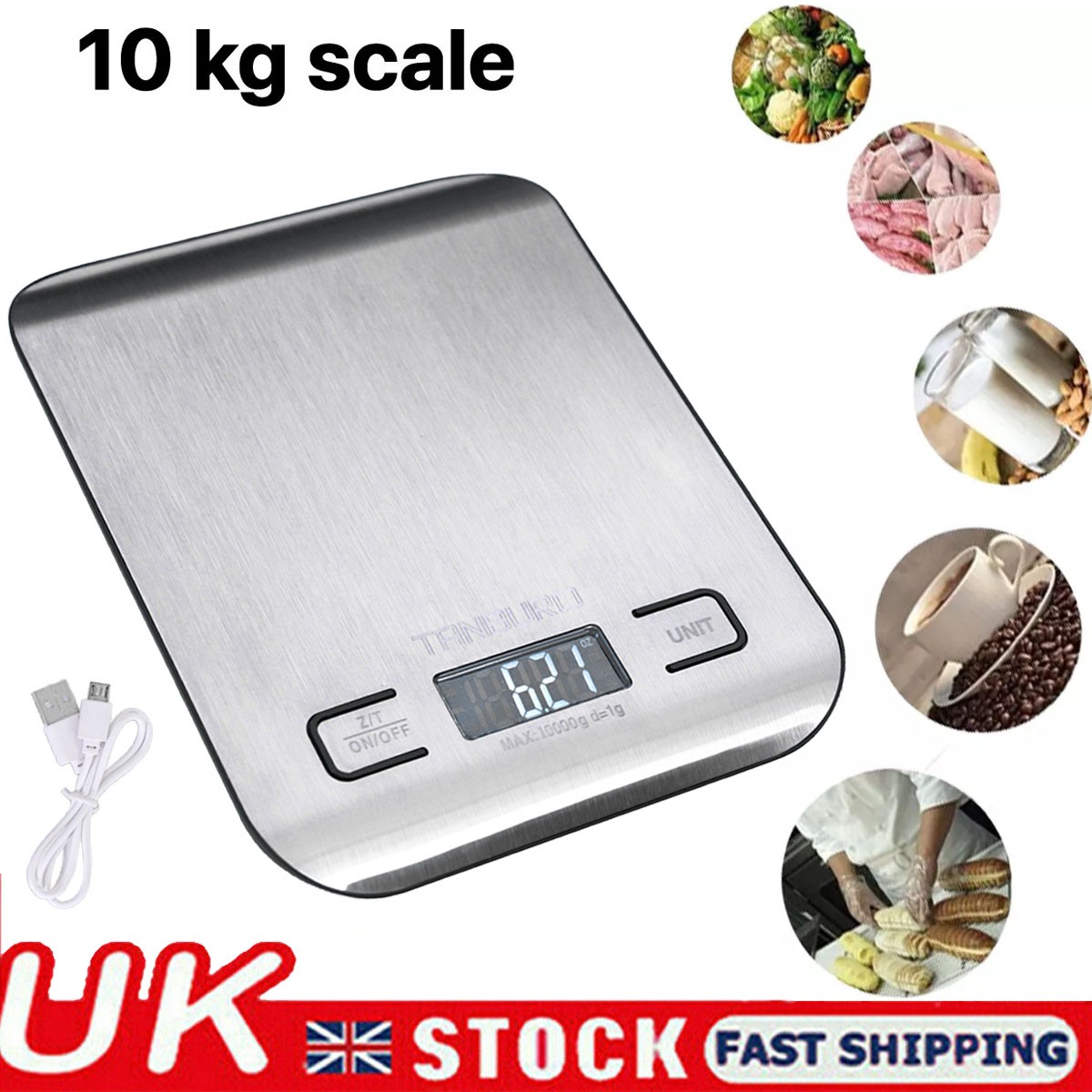 10KG/1G USB Digital Kitchen Scales LCD Food Weight Balance Electronic Scale UK