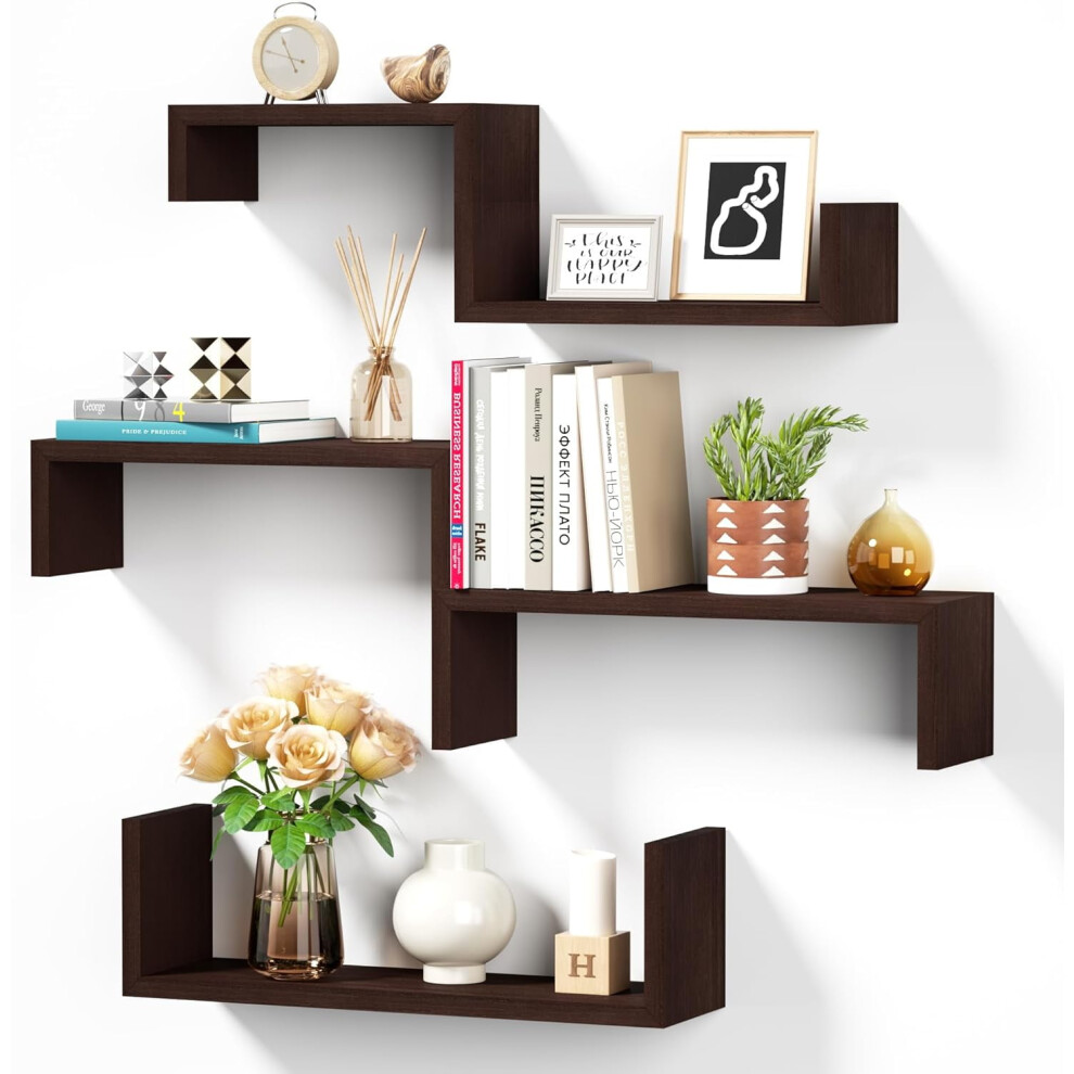 TIANCEWAN Small Floating Shelves, 4 Pack Wooden Shelves for Wall, Mini Wall Shelves for Bedroom Living Room Kitchen, Decorative Shelves for Wall Storage.