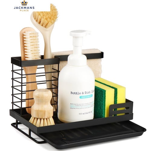 YOHOM Black Kitchen Sink Tidy Caddy 3-in-1 Sink Brush Holder Washing up Sponge