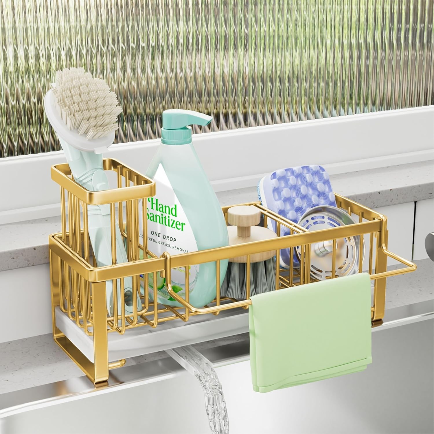 MainPi Kitchen Sink Caddy Organiser With Self-Drain Tray, Sponge Holder, Towel Hanger, Brush Holder and Washing up Tidy