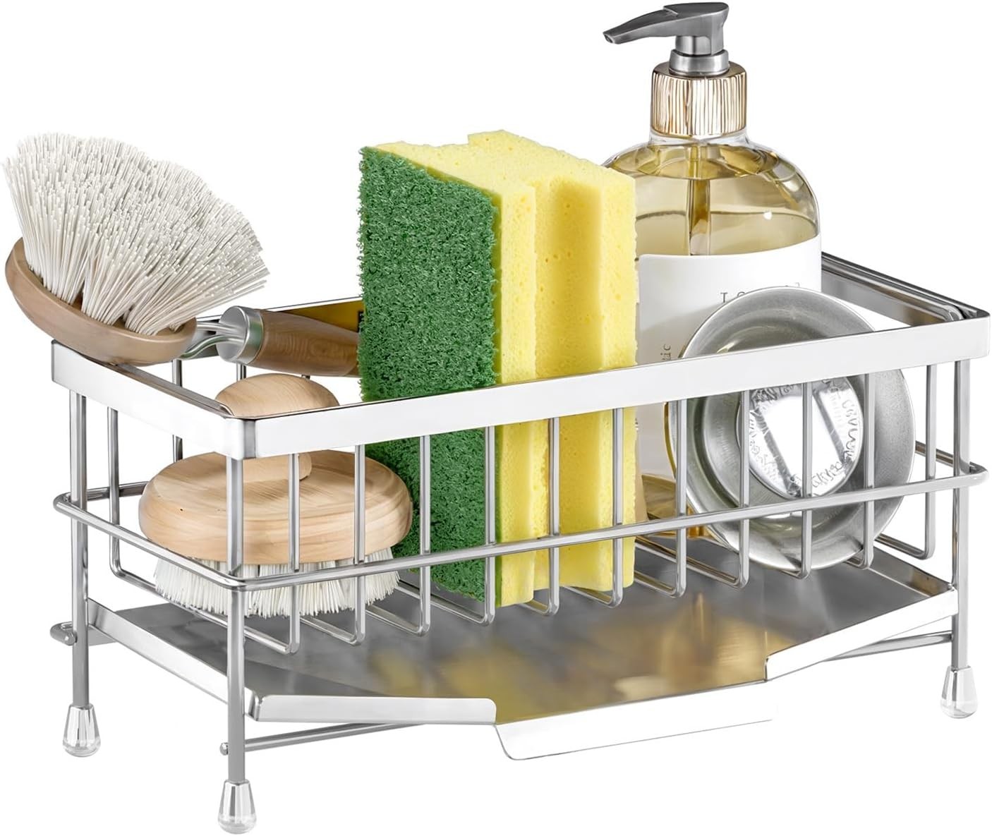 Kitchen Sink Caddy Organizer 304 Stainless Steel Sponge Brushes Dispenser