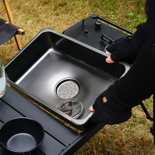 Yhenlovtt Camping Kitchen Sink Igt for Igt Table 55l Stainless Steel Outdoor Cam Sink with Drain Cover Compatible with Basin Modular Washing
