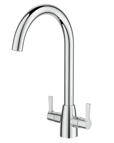FORIOUS Kitchen Mixer Tap, Monobloc Kitchen Sink Taps 1 Hole with Dual Lever 360 Swivel, Suitable for Home Kitchens, RVs, Camping, Polished Chrome