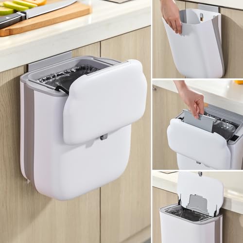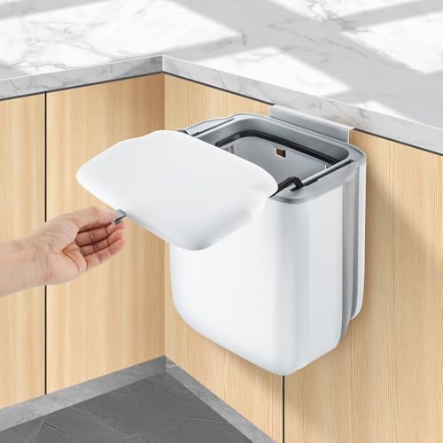 Foldable Hanging Trash Bin with Lid,10L Rubbish Bin Kitchen Compost Bin Hanging Trash Can for Counter top/Under Sink/Kitchen/Camping/Car/Bathroom/Office/Bedroom