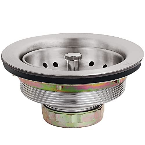 EADOT 3-1/2 Inch Brushed Nickel Kitchen Sink Drain Assembly with Strainer Basket Stopper, Stainless Steel Kitchen Sink Drain Strainer and Stopper, Kitchen Sink Basket Strainer, Sink Strainer Drain