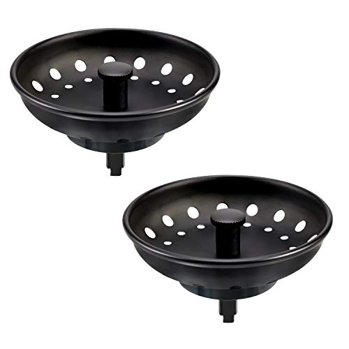 KONE Black Sink Basket Strainer Drain Stopper, 2 Pack Stainless Steel Matte Black Kitchen Sink Strainer Fit for Universal 3-1/2 inch Kitchen Sink, Metal Center Knob with Anti-Clog Rubber Sink Stopper