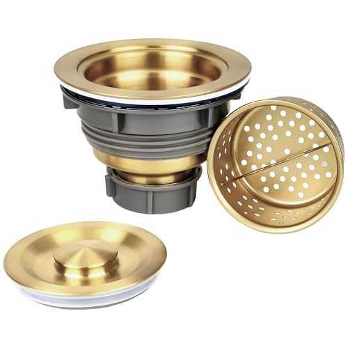 LQS Kitchen Sink Drain Strainer Assembly, Sink Drain 304 Stainless Steel with Removable Deep Waste Basket and Sealing Lid 3-1/2-inch Golden