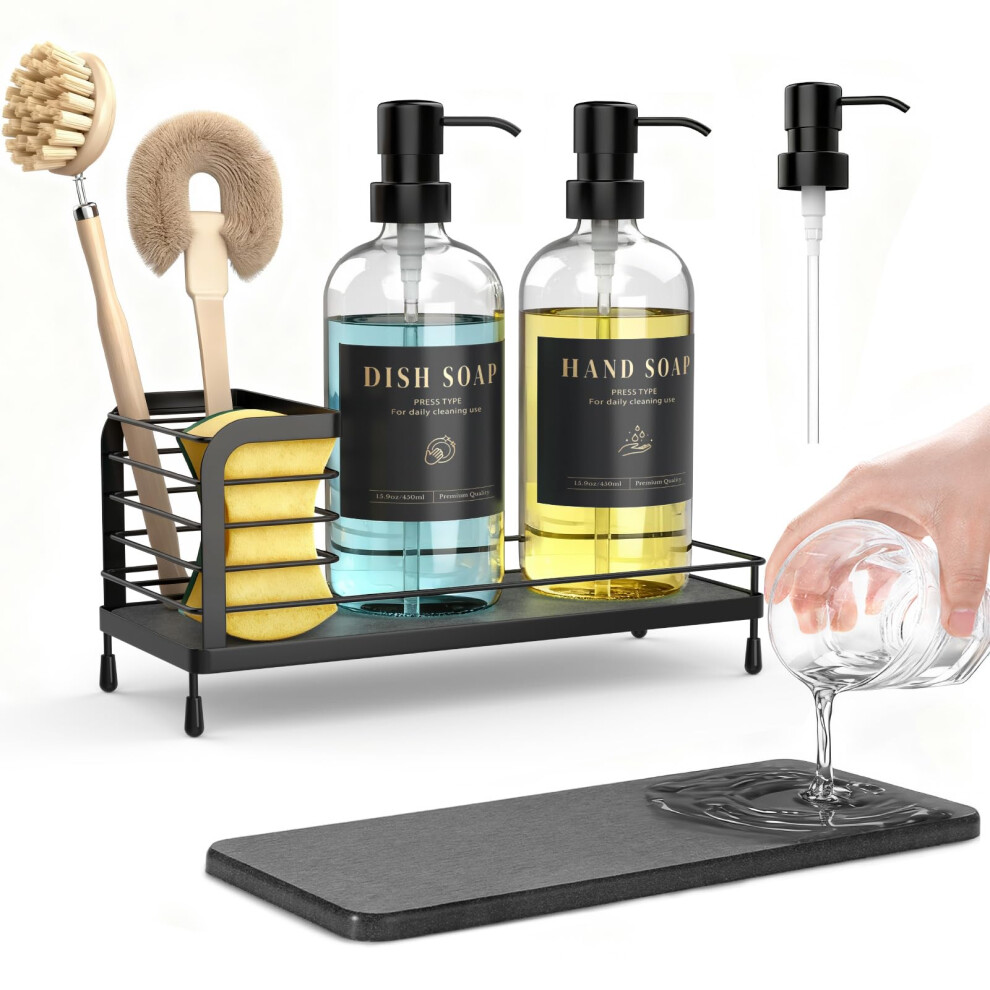 Black Kitchen Soap Dispenser Set for Kitchen Sink Storage