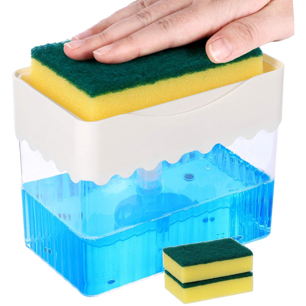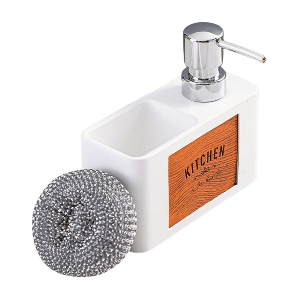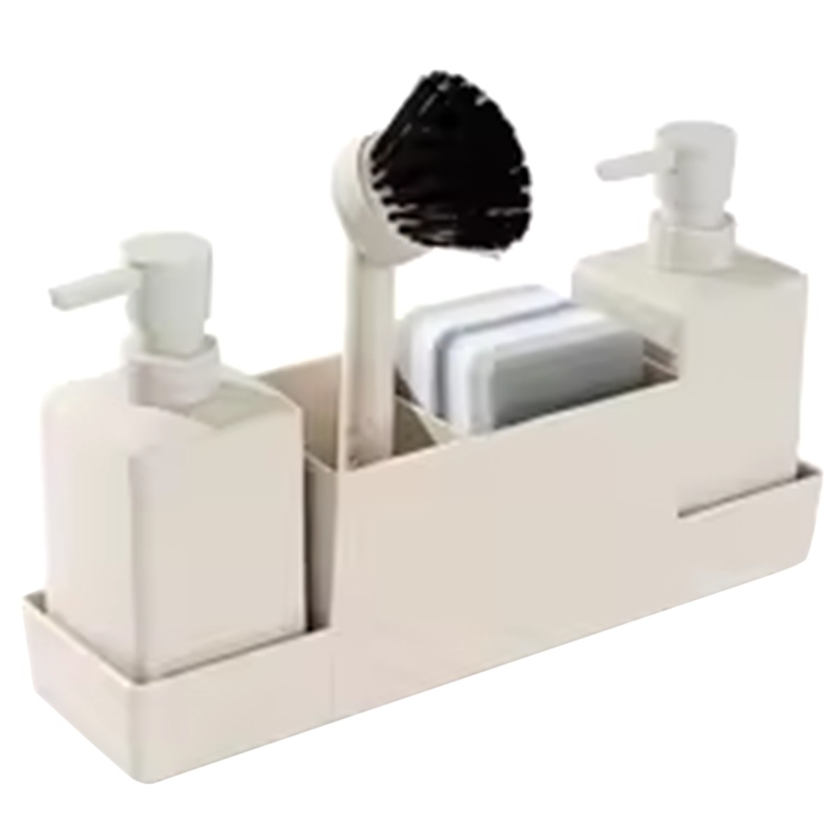 2X(Kitchen Soap Dispenser Sponge Holder Set Sink Beige R6W7)8938