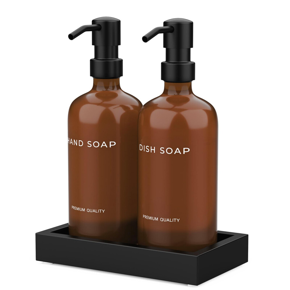 Amber Kitchen Soap Dispenser Set with Tray - Hand and Dish Soap Dispenser for Kitchen,Modern Kitchen Decor & Accessories. (Amber)