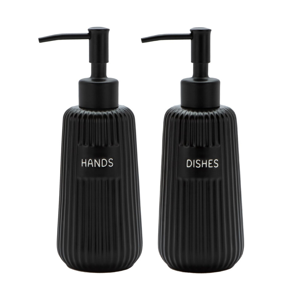 Kitchen Black Dish Soap Dispenser Set with Tags Countertop Storage Home Decor