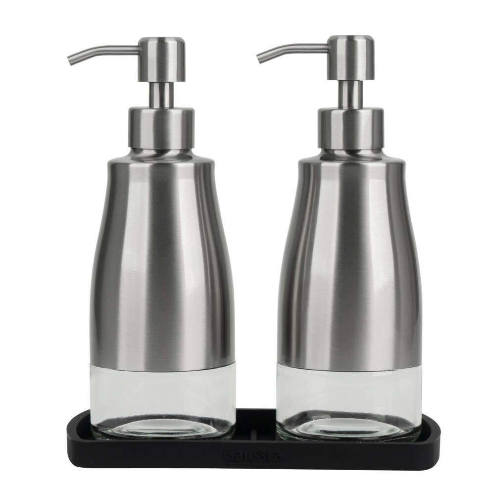 Gaussra Kitchen Soap Dispenser Set with Silicone Tray and Stickers - Brushed Nickel Stainless Steel Glass Soap Dispenser Bathroom Refillable Hand Di