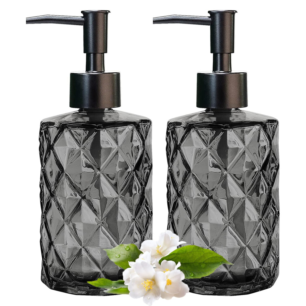 2 Pcs Glass Soap Dispenser Set for Bathroom 11oz. Glass Soap Bottles with Plastic Pump Kitchen Dish Soap Dispenser Set Hand-Pump Dispenser for Liq