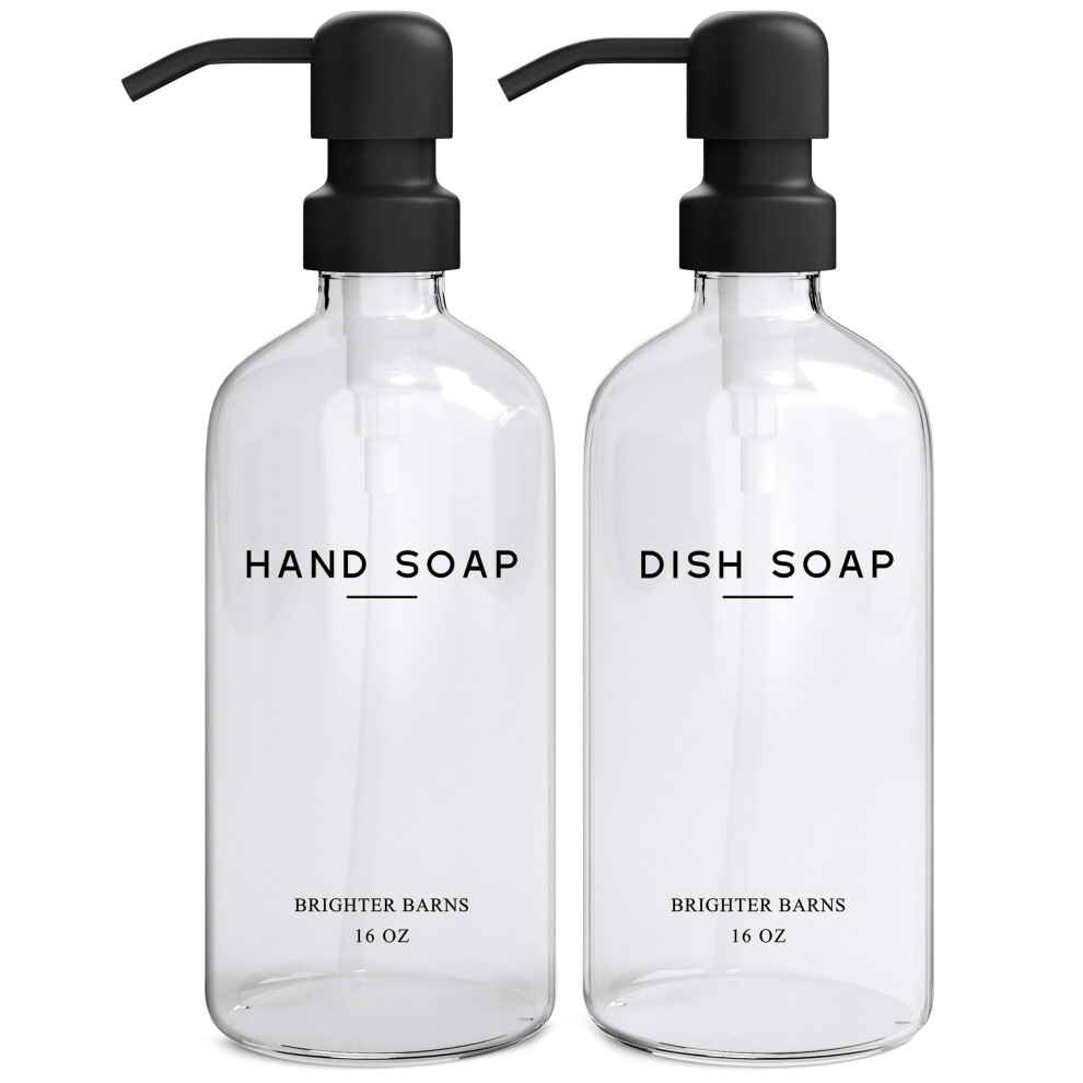 Clear Glass Soap Dispenser Set by Brighter Barns - Hand and Dish Soap Dispenser for Kitchen Sink - Kitchen Soap Dispenser Set & Pump - Modern Kitchen