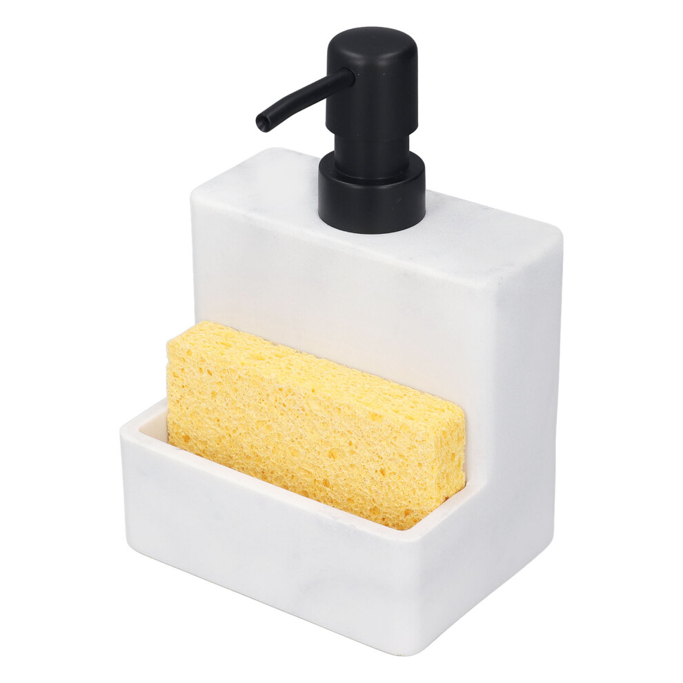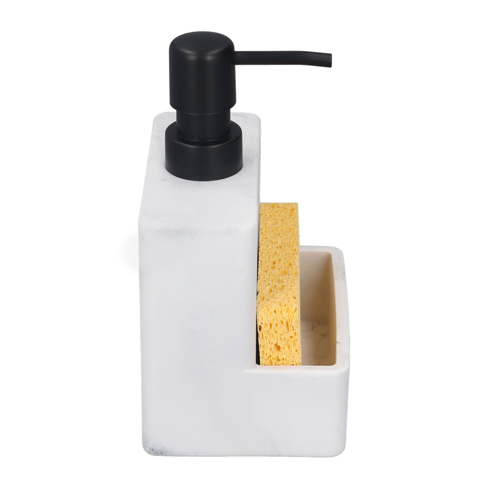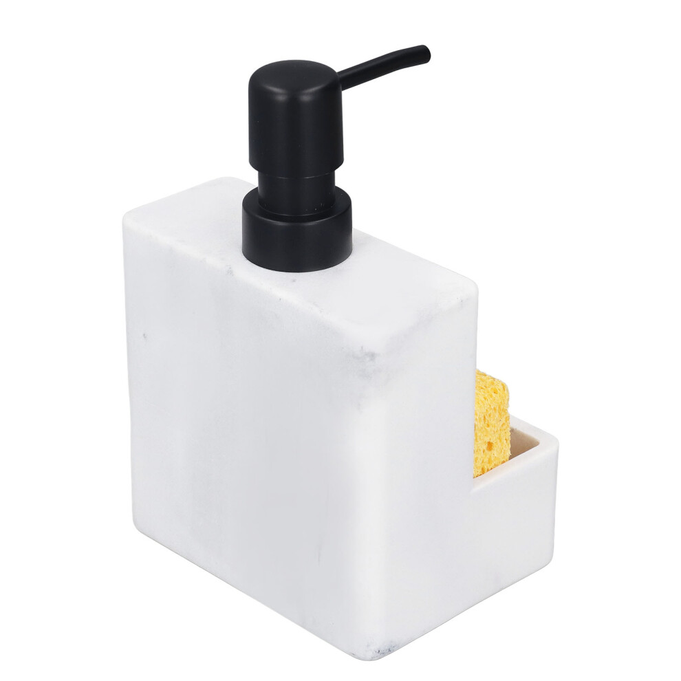 Modern Marble Look Kitchen Soap Dispenser Set 300ml with Sponge Holder
