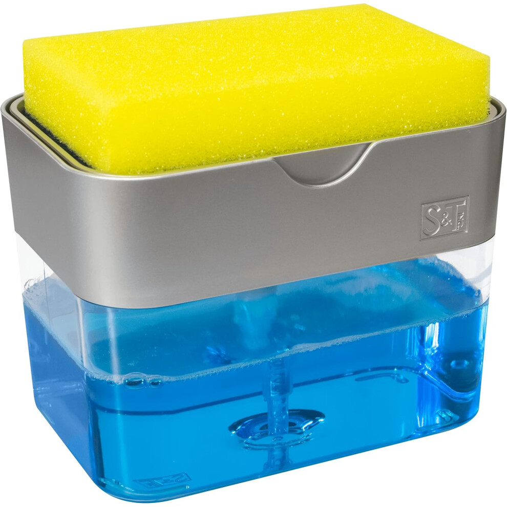 High Quality Kitchen Sink Soap Dispenser Set, Effortless Dispensing Silver Dish Soap Station With Sponge Holder For Save Space And Multipurpose Use