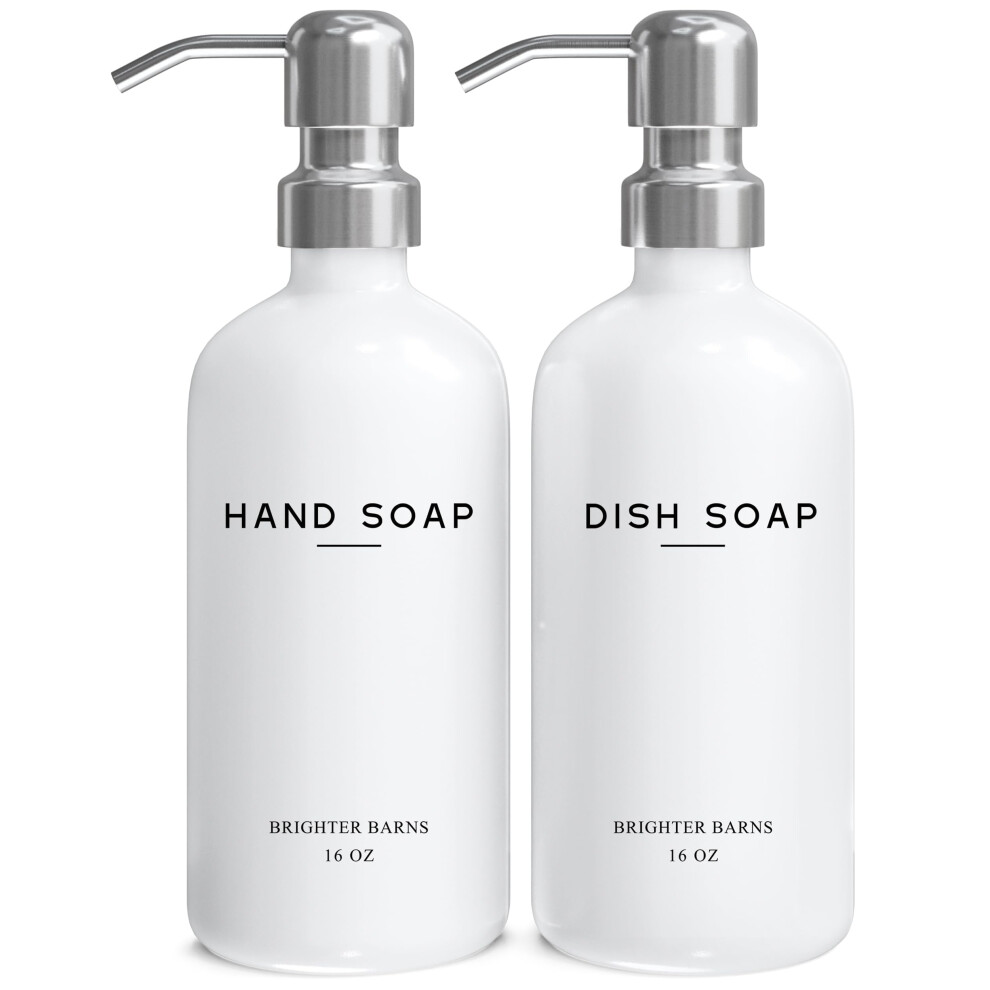 White Glass Soap Dispenser Set by Brighter Barns - Hand and Dish Soap Dispenser for Kitchen Sink - Kitchen Soap Dispenser Set & Pump - Farmhouse