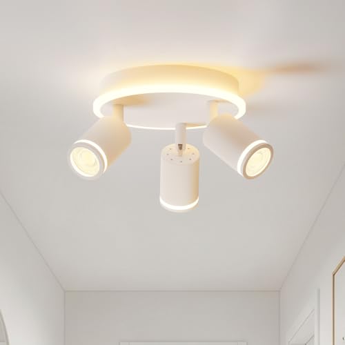 LVWIT White Ceiling Light Fitting,3 Way Spot Lights,Bedroom Lights Ceiling with GU10,Adjustable Kitchen Lights Ceiling,Spotlight Bar Lighting,Living Room Lighting,Modern Ceiling Spots (NO Bulbs)