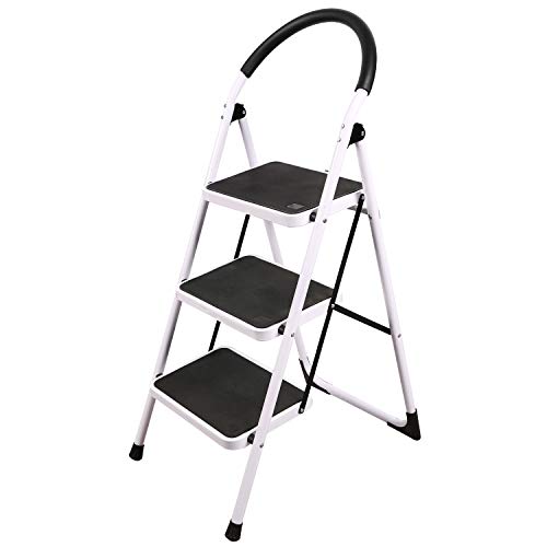 REDCAMP Folding 3 Step Ladder with Handrails,Heavy Duty Wide Kitchen Steps Stool for with Anti-Slip Feet & Sturdy Frame,Ideal for Adults Elderly Home Office,Holds 330 lbs