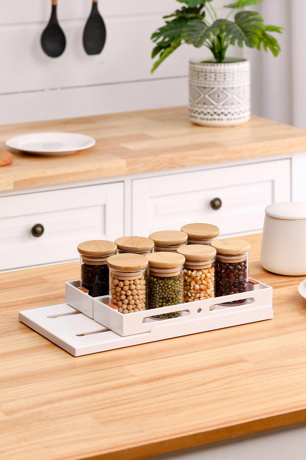 Multifunctional Kitchen Rotating Storage Spice Rack, Pull-out Countertop Storage Shelf