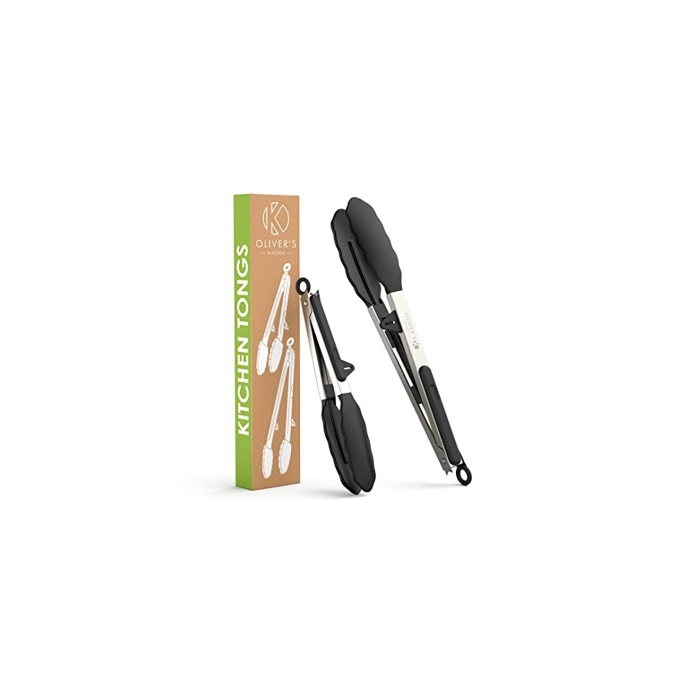 Oliver's Kitchen Tongs - 2 x Food Safe Silicone Cooking Tongs - Locking Clip for Easy Storage - Great for BBQ - Easy to Use & Grip Serving Tongs -