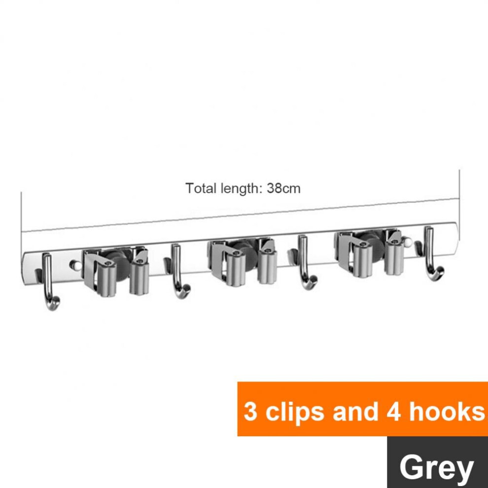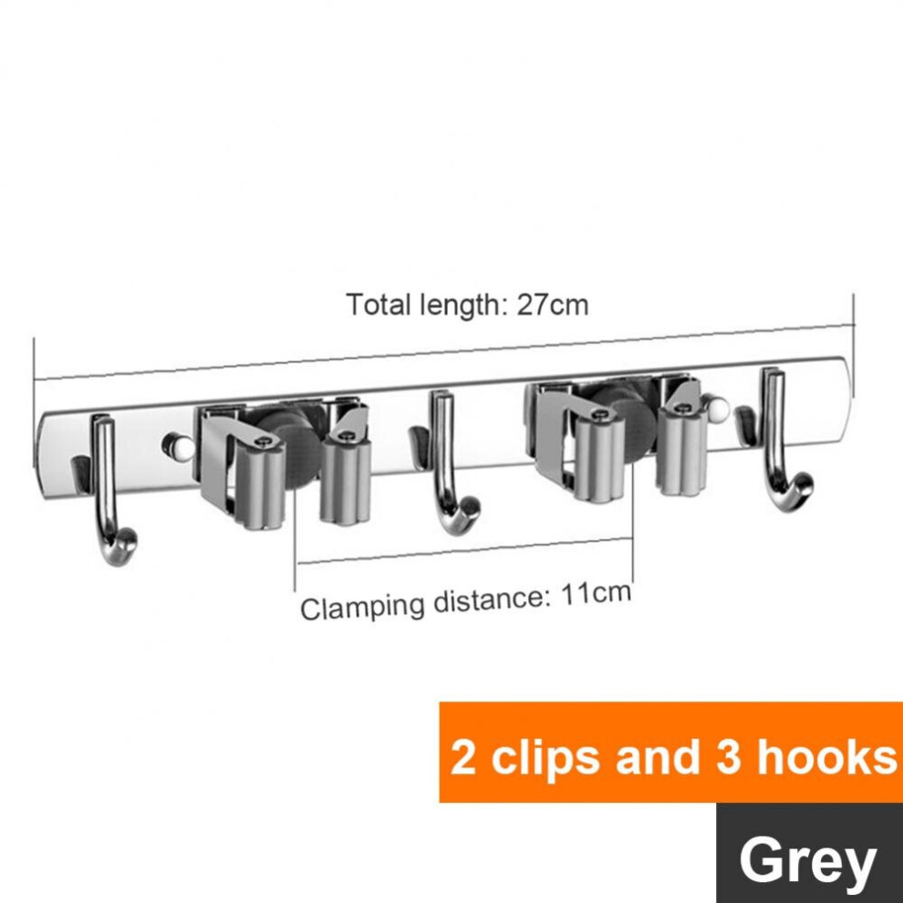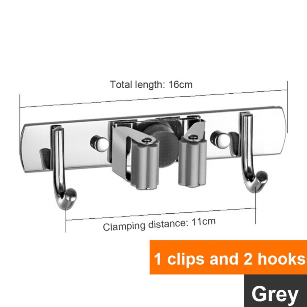 (a-01) Stainless Steel Mop Clip Wall Mounted Mops Rack Kitchen Tool Seamless Broom Holder Hanging Cleaning Tools Organizer Punch-free