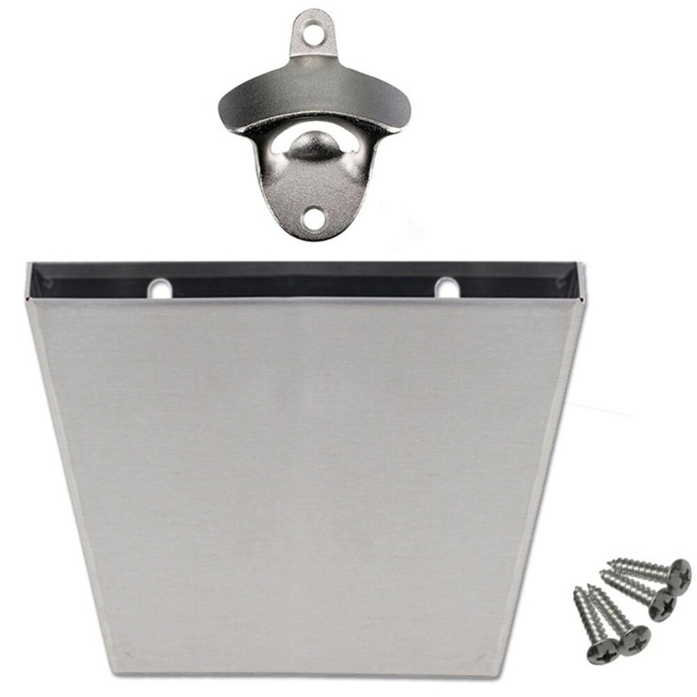 Stainless Steel Bottle Opener Wall Mounted Beer Cap Catcher Storage Bucket Box with Screws for Kitchen Bar Holder Tool B