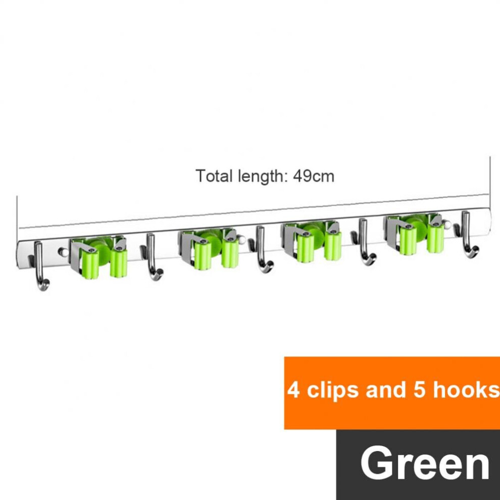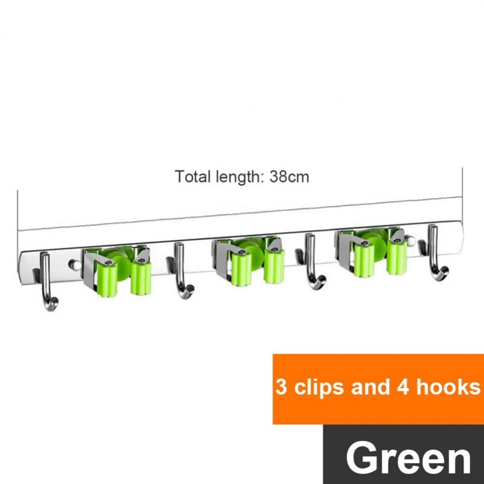 (a-10) Stainless Steel Mop Clip Wall Mounted Mops Rack Kitchen Tool Seamless Broom Holder Hanging Cleaning Tools Organizer Punch-free