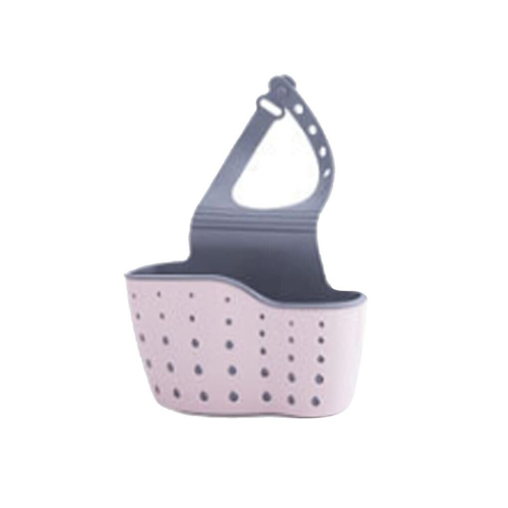 (a-pink) Adjustable Sink Drain Bag Home Punch-Free Dish Storage Basket Sponge Soap Drain Rack Hanging Kitchen Organizing Holder Tool
