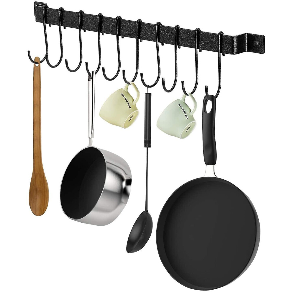 Piao 43cm Wall Hanging Pot Rack, With 10 Hooks For Hanging Pot, Kitchen Rack, Kitchen Wall Shelf, Kitchen Hanger, Kitchen Utensil Holder, Tool Holder,