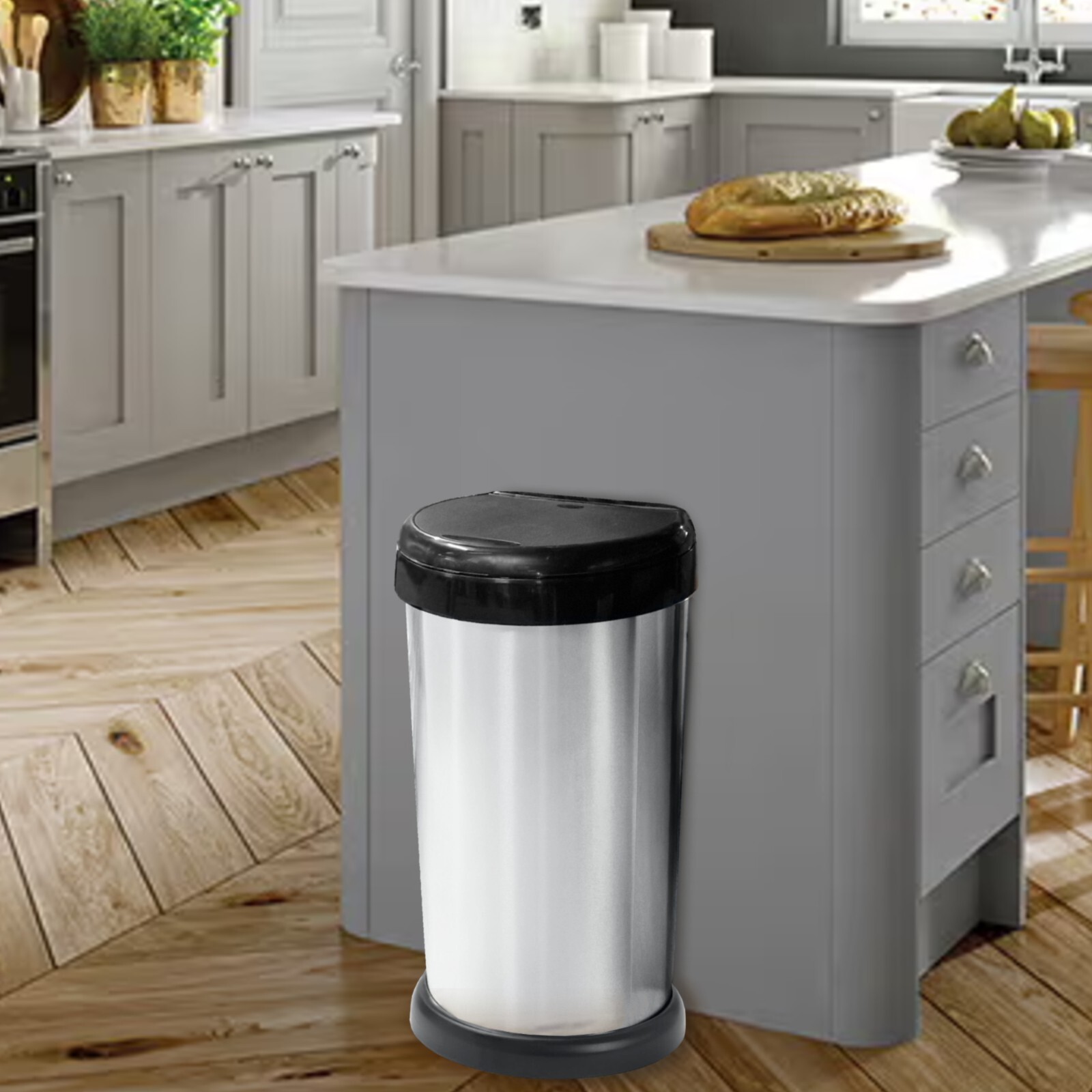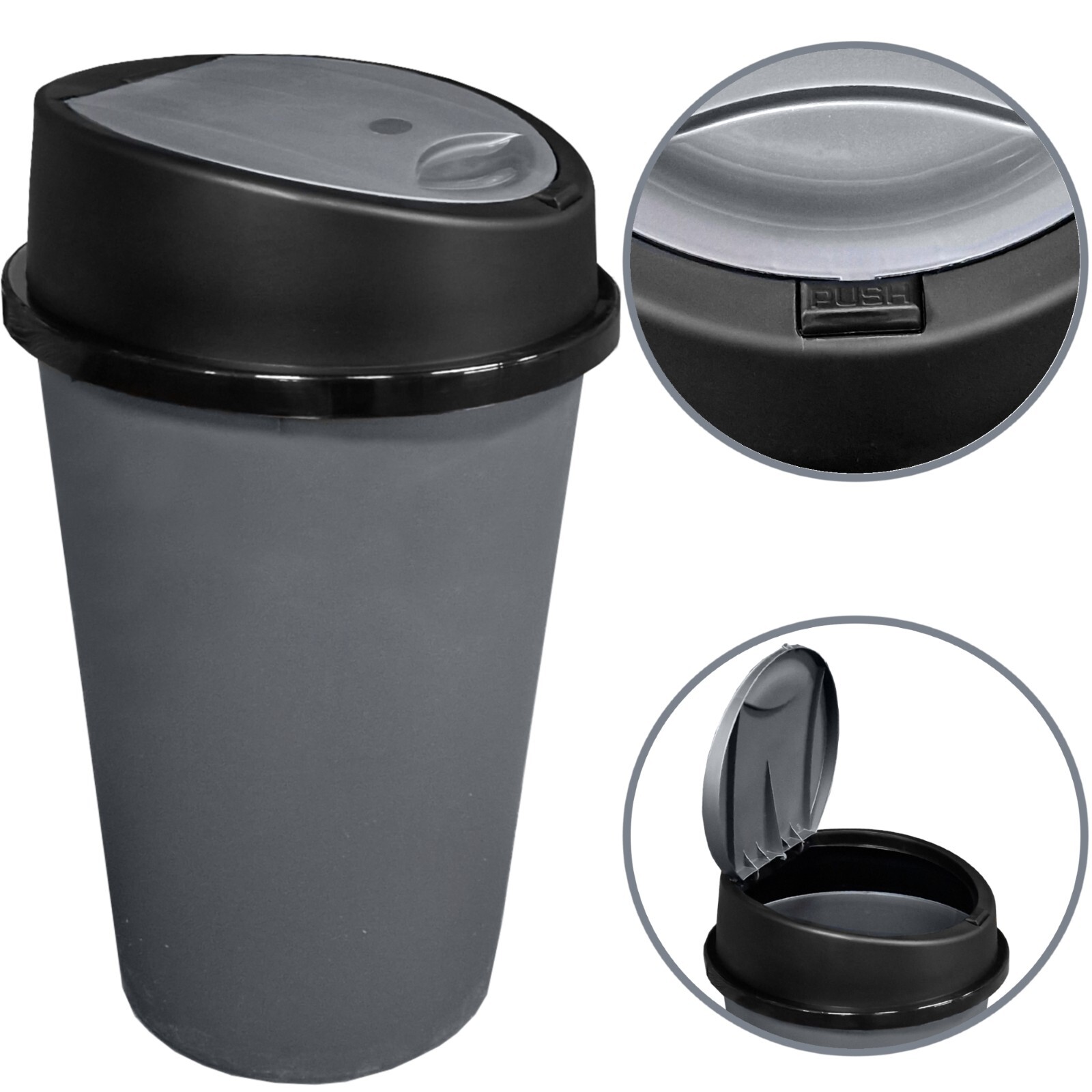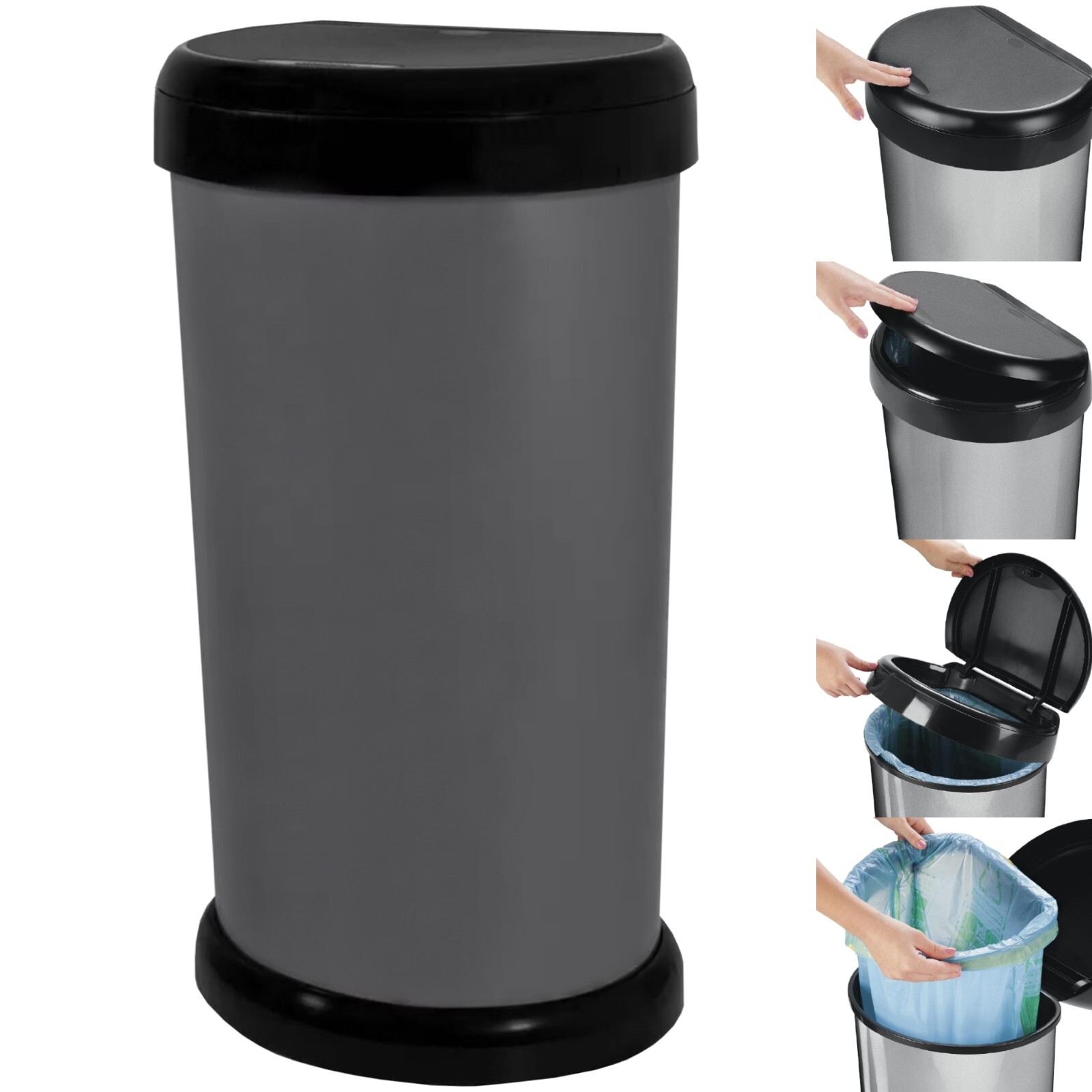 Grey Kitchen Bin Touch Top Bin Dustbin Rubbish Bin Kitchen Home Plastic 50L