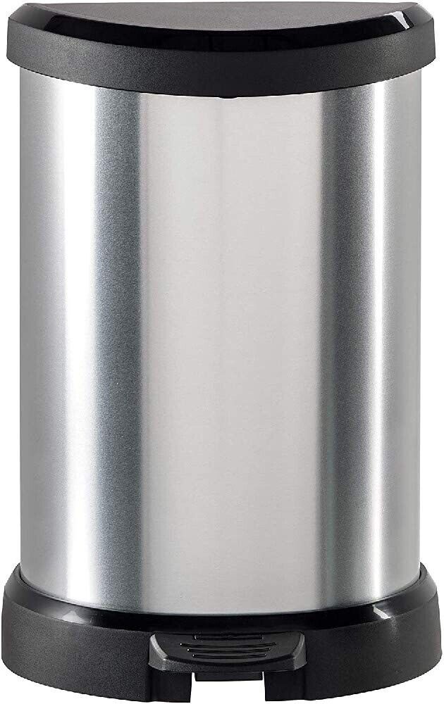 Curver Metal Effect Pedal Touch Slim Deco Kitchen Work Waste Bin 20L - Silver