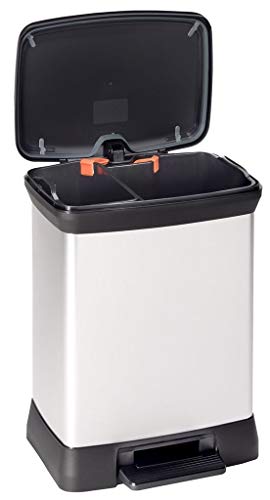 Curver Metal Effect 70% Recycled Kitchen Accessories 30L Duo Recycling Pedal Touch Deco Bin, Silver