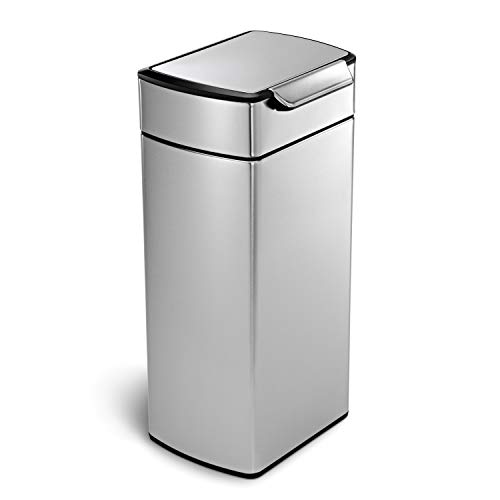 simplehuman CW2014 40L Rectangular Touch-Bar Kitchen Bin, Easy Open Touch-Bar, Stay-Open Lid, Inner Bucket, Space-Efficient Hinge, Fingerprint-Proof, Brushed Stainless Steel