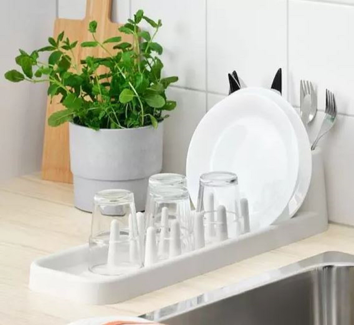 Dish Drainer Rack with Drip Tray Kitchen Sink Cutlery Utensils Holder Plate Rack
