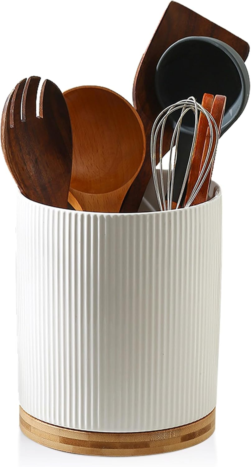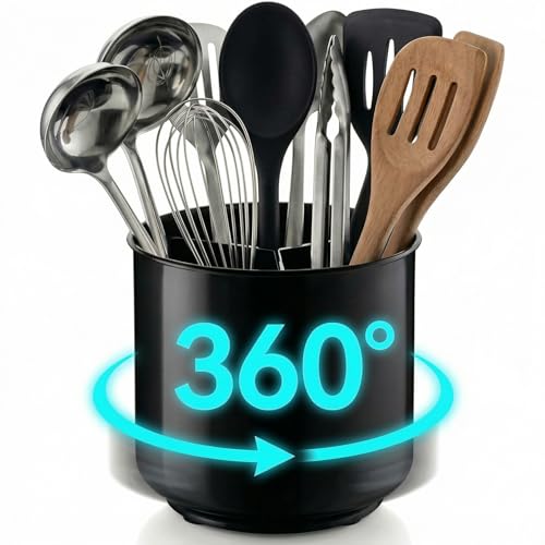 Utensil Holder, 360° Rotating Ceramic Kitchen Utensils Holder Canisters for Coun