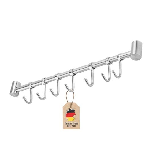 Intirilife hanging rail for the kitchen made of stainless steel with 7 movable hooks for drilling - 39.6 x 3.4 x 2.2 cm - kitchen railing hook rail holder kitchen utensils rod cup holder wall holder