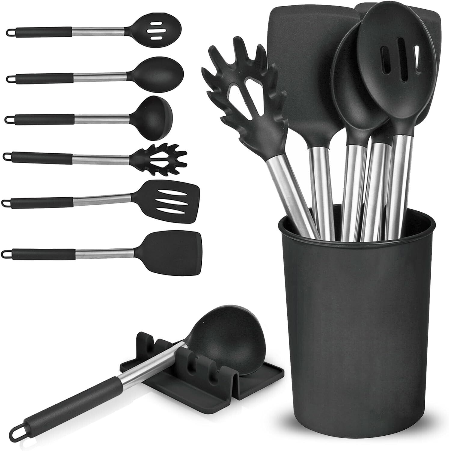 Herogo Kitchen Utensils Set with Holder, 10 Pieces Silicone Cooking Utensil with