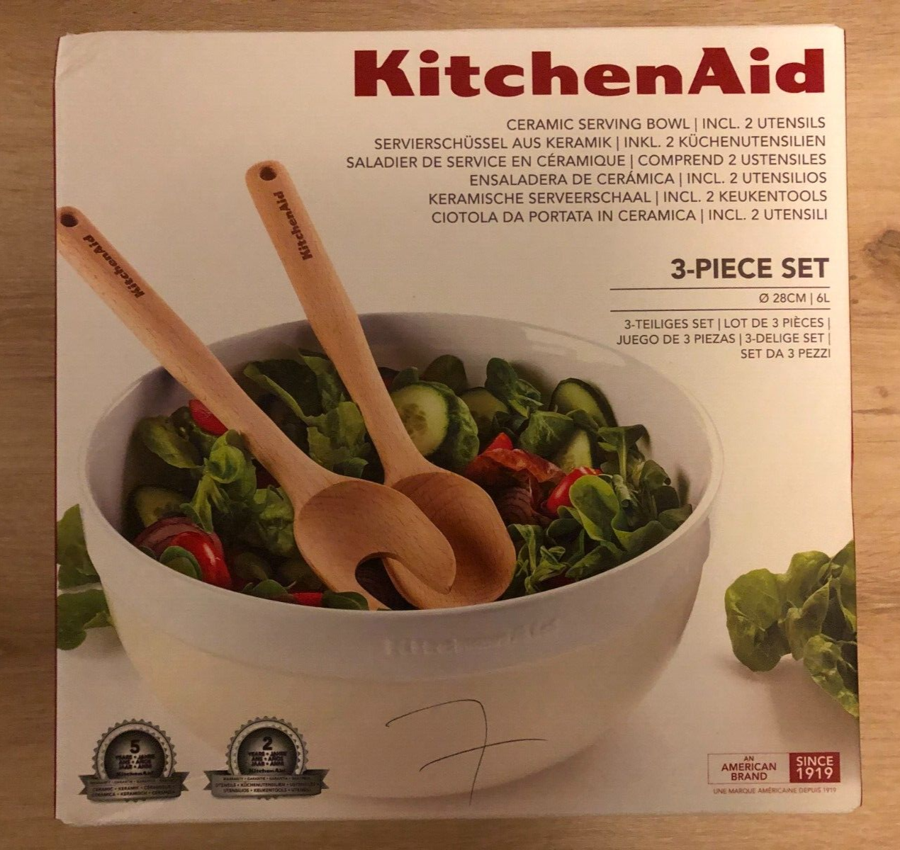 KitchenAid Durable Ceramic Serving Bowl with Utensils 28cm - Microwave Oven Safe