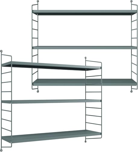 [en.casa] Modular Wall Shelf Strängnäs Set of 2 Metal Shelf Grey-blue Hanging Shelf with 3 Shelves Bathroom Shelf Kitchen Wall Shelf Wall Storage Living Room