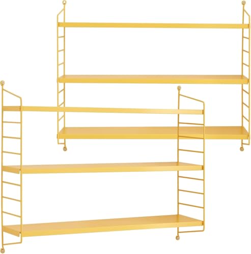 [en.casa] Modular Wall Shelf Strängnäs Set of 2 Metal Shelf Yellow Hanging Shelf with 3 Shelves Bathroom Shelf Kitchen Wall Shelf Wall Storage Living Room