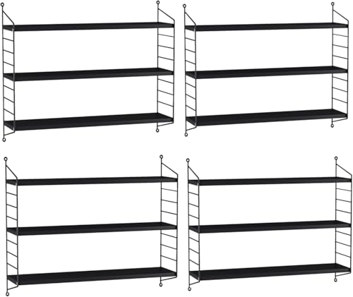 [en.casa] Modular Wall Shelf Strängnäs Set of 4 Metal Shelf Black Hanging Shelf with 3 Shelves Bathroom Shelf Kitchen Wall Shelf Wall Storage Living Room