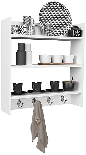 [en.casa] Modular Wall Shelf Strängnäs Set of 4 Metal Shelf White Hanging Shelf with 3 Shelves Bathroom Shelf Kitchen Wall Shelf Wall Storage Living Room