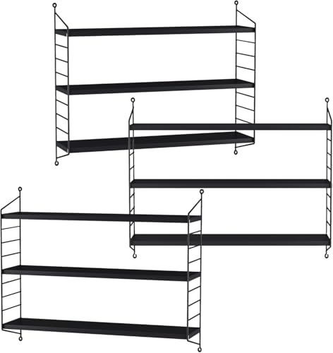 [en.casa] Modular Wall Shelf Strängnäs Set of 3 Metal Shelf Black Hanging Shelf with 3 Shelves Bathroom Shelf Kitchen Wall Shelf Wall Storage Living Room