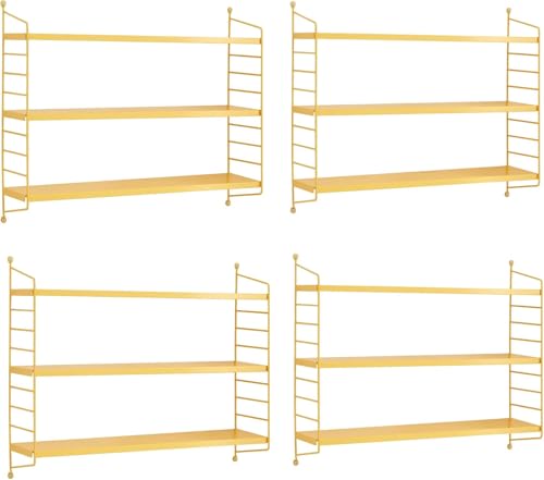 [en.casa] Modular Wall Shelf Strängnäs Set of 4 Metal Shelf Yellow Hanging Shelf with 3 Shelves Bathroom Shelf Kitchen Wall Shelf Wall Storage Living Room
